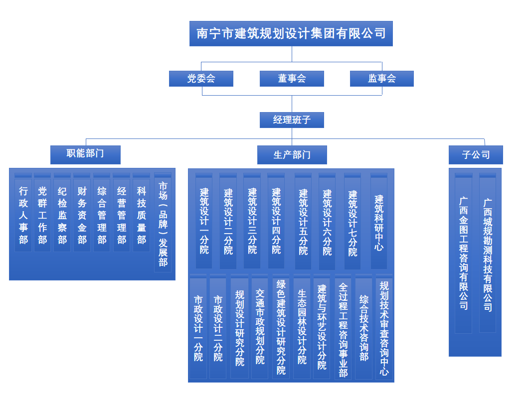 集團按照現(xiàn)代企業(yè)制度和法人治理結(jié)構(gòu)要求,設(shè)有“三會一層”,即黨委會、董事會、監(jiān)事會和經(jīng)理層,內(nèi)設(shè)8個職能部門和18個業(yè)務(wù)生產(chǎn)部門,下屬2個全資子公司,下轄15個黨支部。